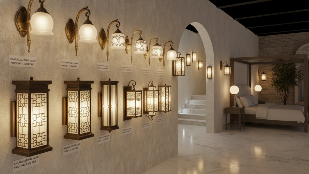 Wall lamp price in Pakistan and wall-mounted lamp cost in Pakistan offer both decorative and functional lighting. They are ideal for hallways, staircases, bedrooms, and porches. Popular choices include LED wall lamp price Pakistan and energy-saving lamp price Pakistan.
